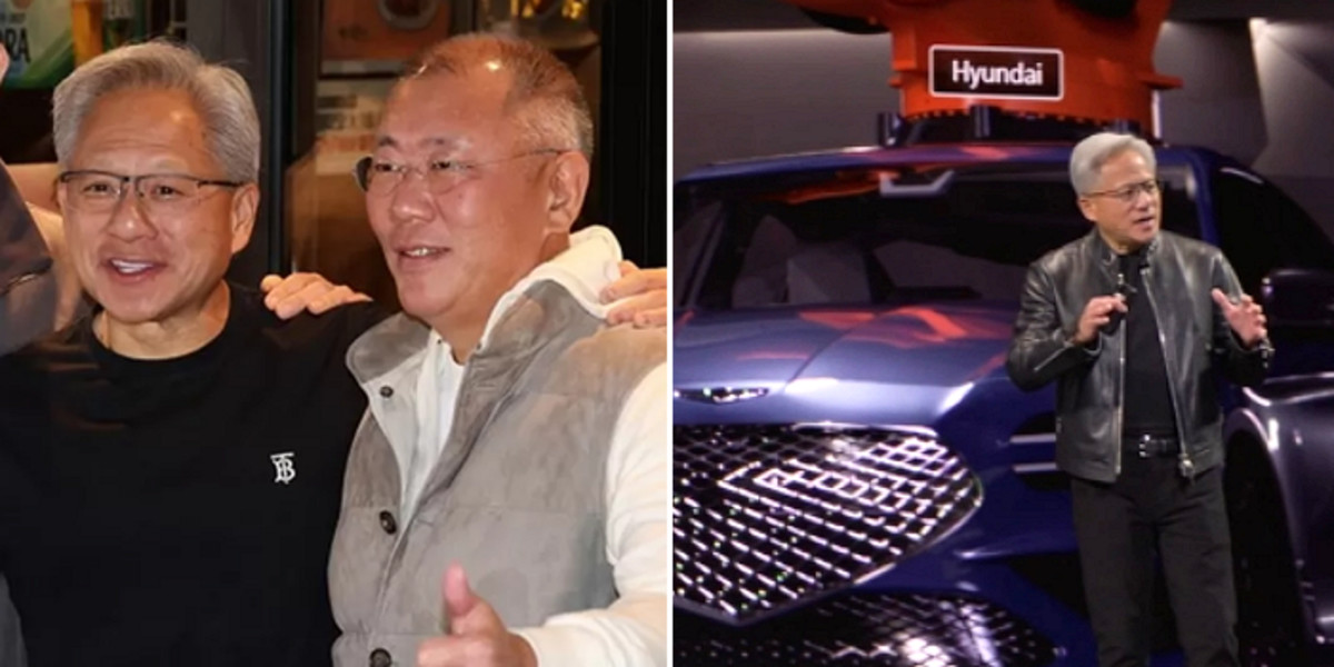 가죽 재킷을 입고 무대에 오른 젠슨 황 엔비디아 최고경영자(CEO)의 등 뒤로 푸른색 제네시스 G70이 등장했다.