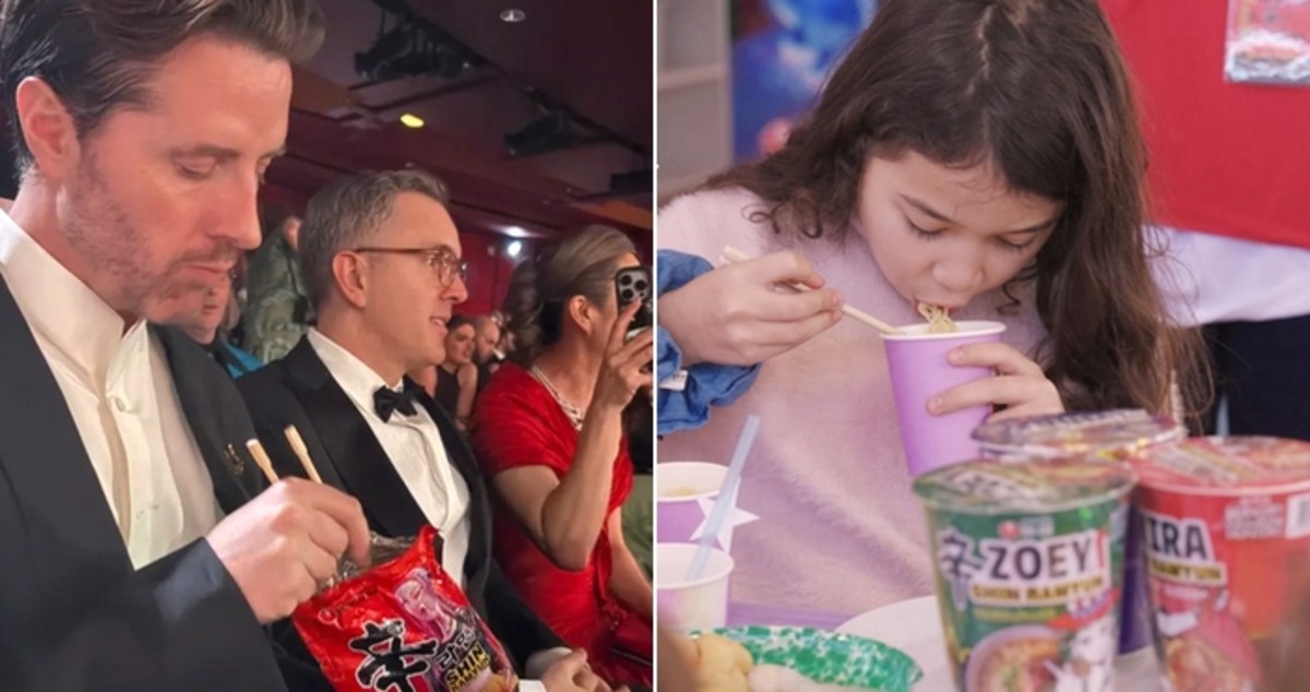 지난 15일(현지 시간) 제98회 오스카 시상식이 한창이던 LA 돌비 극장. '케데헌'의 크리스 아펠한스(Chris Appelhans) 감독이 장편 애니메이션 상을 수상한 후 자리에 돌아와 익숙한 솜씨로 라면 봉지를 뜯어 생면을 부수어 먹는 모습이 포착됐다.