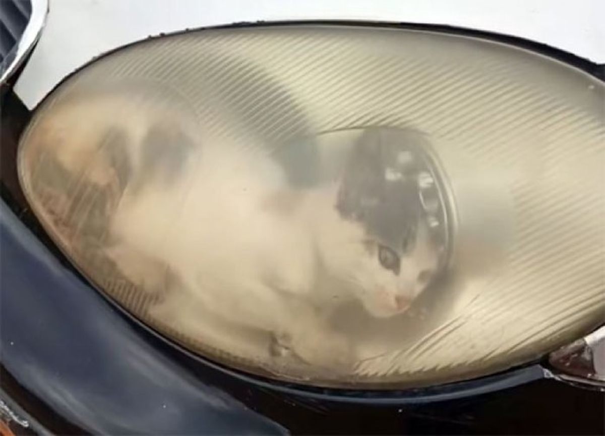 헤드라이트 렌즈 안에는 작고 어린 암컷 아기 고양이가 갇혀 있었다. 차량 주인조차 고양이가 어떻게 그 안에 들어갔는지 전혀 인지하지 못한 상태였다.
