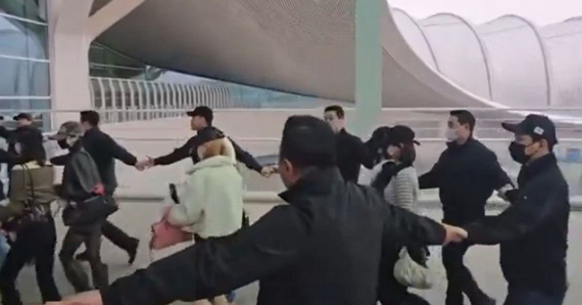 지난 18일 소셜미디어에 게시된 영상에는 인천공항에서 하츠투하츠 멤버들을 둘러싼 경호원들의 모습이 담겼다.