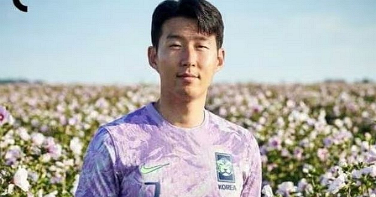 손흥민이 보라색 유니폼을 입고 무궁화를 들고 있는 합성사진 / 온라인커뮤니티