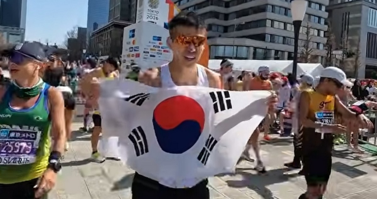 마지막 1km 구간에서 태극기를 펼쳐 들고 환호하며 들어오는 그의 모습은 현장에 있던 많은 이들에게 깊은 울림을 주었다.