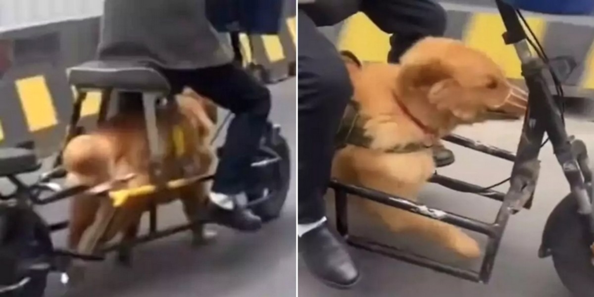从网传视频看,一名年长男子骑着一辆经过特殊改装的电动车出行,原本放置电池的位置已被掏空,取而代之的是一只大金毛,金毛不停奔跑,带动自行车和男子一同向前,行进速度着实不慢。… pic.twitter.com/yt12Z0Yqny
