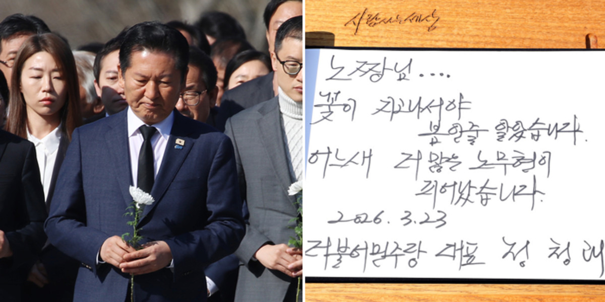 그는 "조금 전 묘역을 찾아 인사를 올릴 때 홀로 외로운 싸움을 감당해야 했던 노무현 대통령님께 죄송한 마음과 함께 이제는 걱정 없이 편히 쉬시라는 말씀을 전했다"고 했다.
