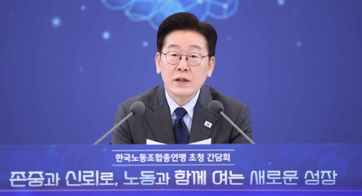 이 대통령은 이날 간담회에서 "노동자는 본질적으로 약자"라고 규정하며 "노동자의 단결권, 단체교섭권, 단체행동권과 같은 노동 3권이 제대로 보장되는 게 중요하다"고 밝혔다.