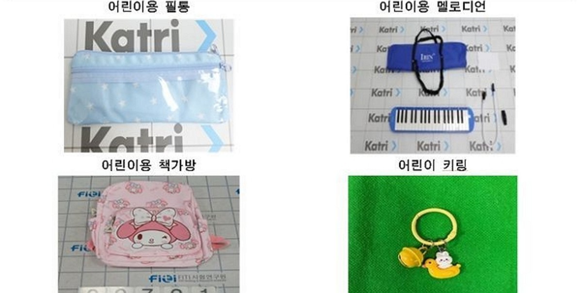 이번 검사에서 적발된 품목은 학용품 6종, 가방 2종, 완구 2종이다. 특히 어린이용 키링에 달린 종 모형에서는 기준치의 549배에 달하는 납이 나왔다.