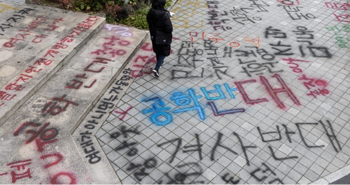 동덕여대 공학 전환 반대 래커칠 2025.12.4/뉴스1