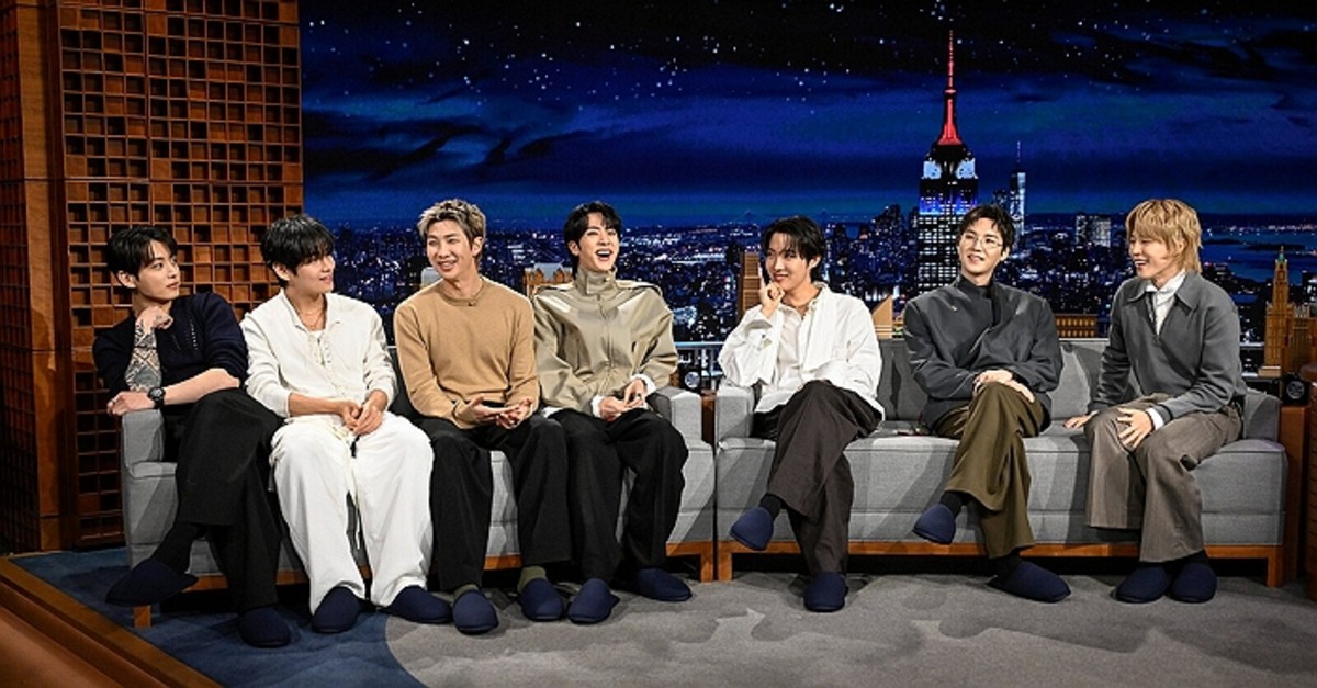 방탄소년단이 4년 8개월 만에 지미 팰런쇼에 출연해 슬리퍼를 착용하며 한국 문화를 소개했다.