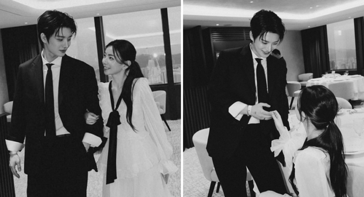 홍지연은 최근 자신의 소셜미디어에 김우진과 다정하게 팔짱을 낀 채 촬영한 흑백 사진을 올렸다. 공개된 사진 속 두 사람은 세련된 의상과 차분한 분위기로 마치 '웨딩 화보'를 연상케 하는 비주얼을 자랑했다.