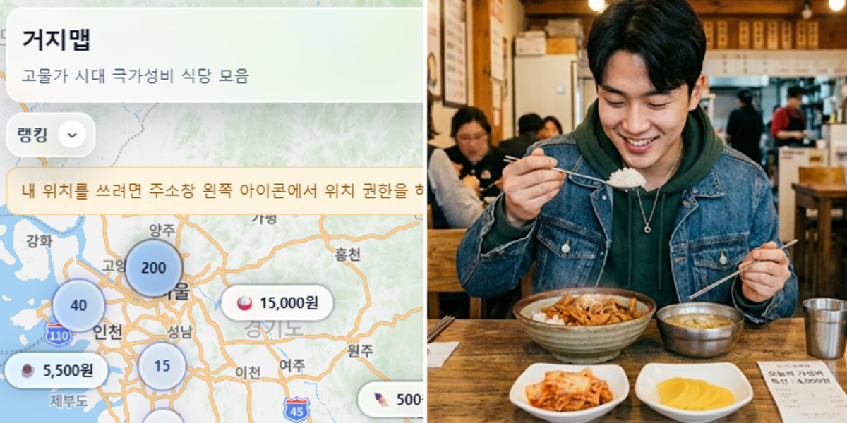 급등하는 외식비에 부담을 느낀 청년층 사이에서 저가 맛집 정보를 공유하는 웹사이트 '거지맵'이 화제를 모으고 있다.