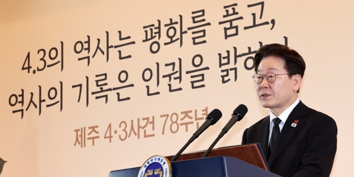 이 대통령은 같은 날 엑스에 "오늘 최악의 국가폭력 사건인 제주 4·3 참배를 (하러)간다"며 "영문도 모른 채 이유 없이 죽창에 찔리고 카빈총에 맞고 생매장당해 죽은 원혼들의 명복을 빈다"고 적었다.