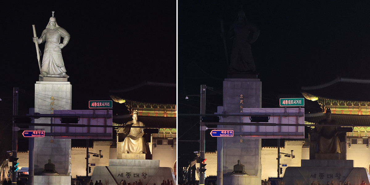 아워어스 캠페인 동참한 이순신 장군과 세종대왕 동상 / 뉴스1