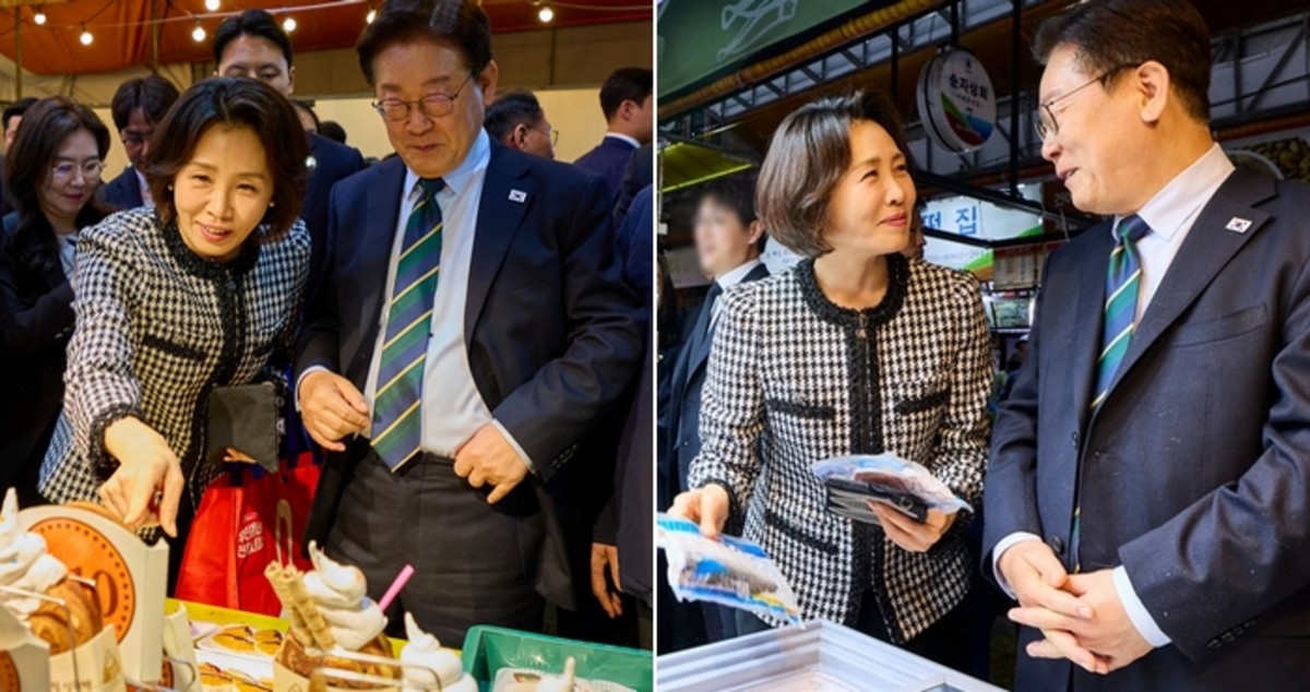 이재명 대통령이 제주 동문시장을 방문해 김혜경 여사와 함께 온누리상품권으로 장을 보며 시민들과 소통하는 시간을 가졌다.