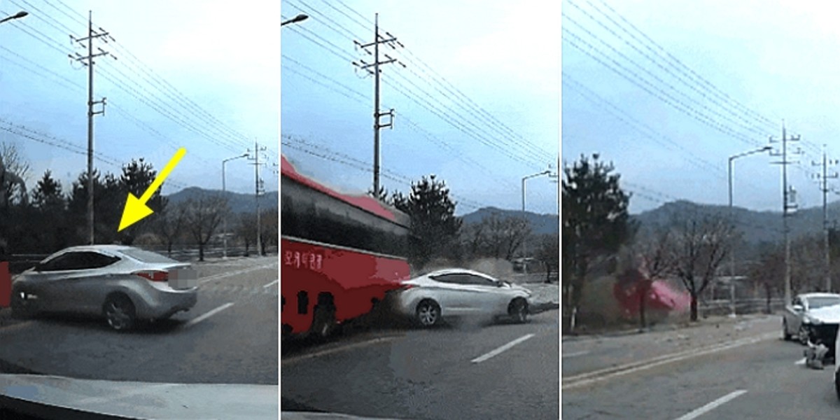 영상 속에서 1차로를 달려오던 45인승 통근버스는 급작스럽게 나타난 승용차를 피하지 못하고 그대로 충돌했다.