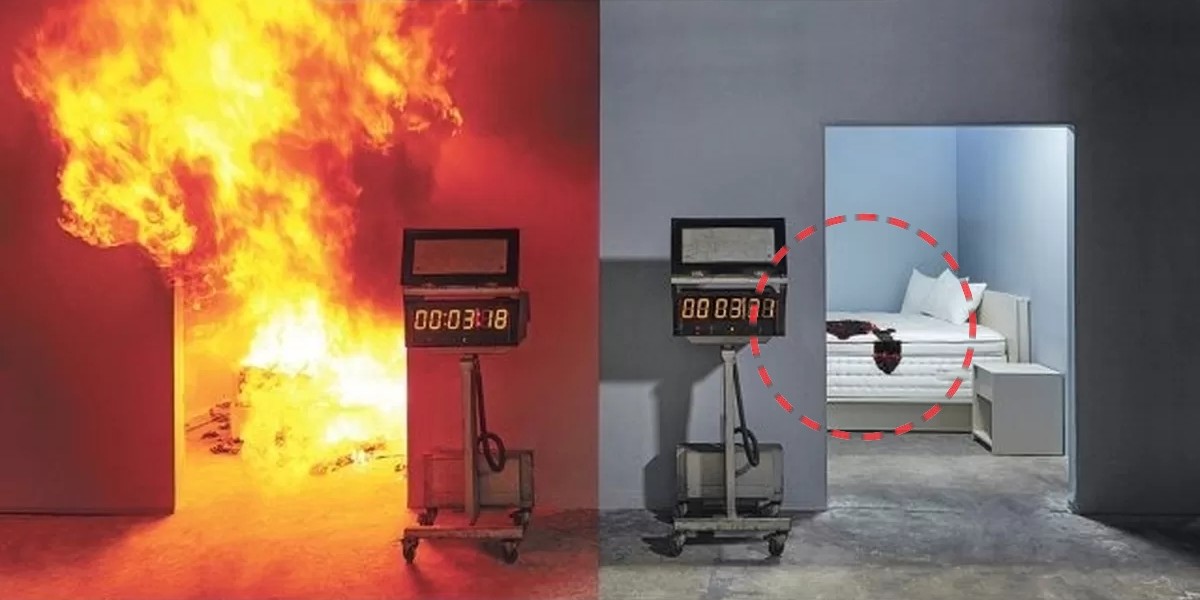 일반적인 매트리스에 불이 붙으면 실내 전체가 폭발적인 화염에 휩싸이는 '플래시 오버(Flash Over)' 현상이 발생하고, 다량의 유독가스가 뿜어져 나와 사람의 탈출을 어렵게 만든다.