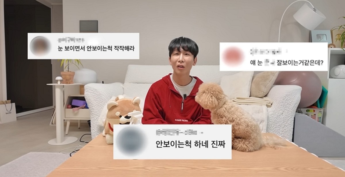 제작진이 읽어준 댓글 중에는 "안 보이는 척하네", "시각장애인 연기하면서 어그로 끄는 것 아님?" 등 시각장애를 의심하는 내용이 포함돼 있었다.