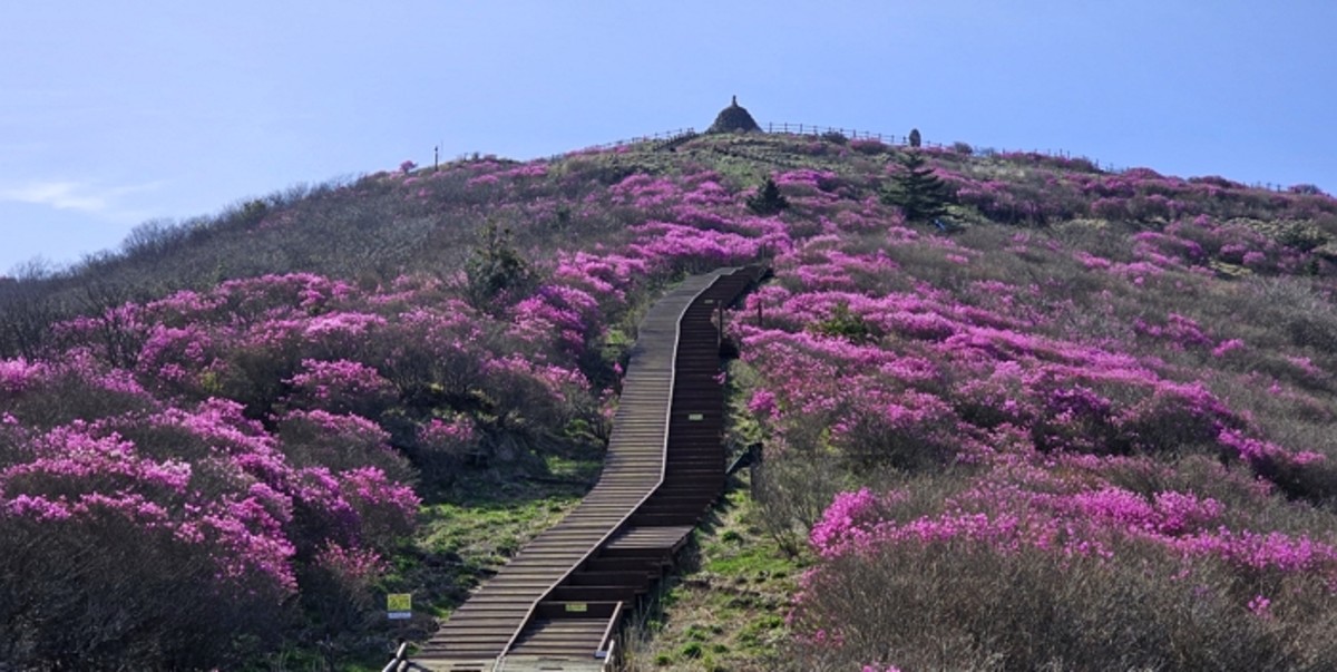 산 전체를 뒤덮은 철쭉 군락은 가히 장관이라 할 만하다. 붉은빛과 분홍빛이 어우러진 철쭉 바다는 인생사진을 남기기에 최적의 장소다.