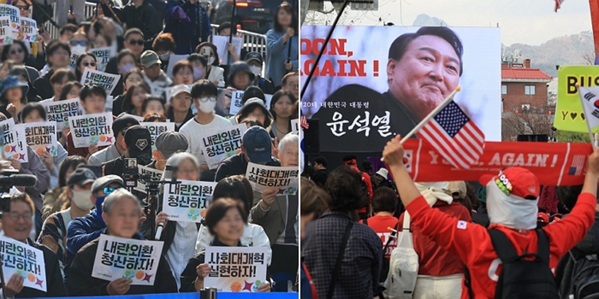 윤석열 전 대통령 탄핵 1주년을 맞은 4일, 서울 시내에서 진보와 보수 성향 시민단체들이 각각 대규모 집회를 열어 상반된 목소리를 냈다.