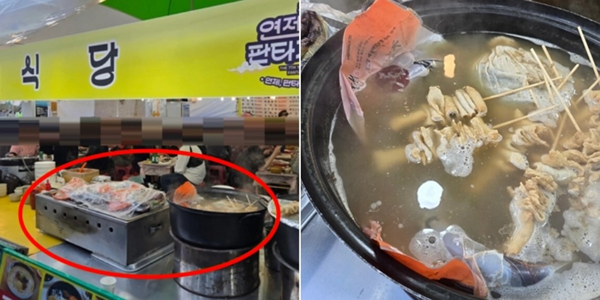 지난 5일 각종 온라인 커뮤니티와 SNS에 올라온 게시물에 따르면, 지난4일 부산 연제구에서 열린 축제 현장의 한 식당에서 어묵 판매용 국물 냄비에 시판 포장 순대를 봉지째 담가 중탕하는 장면이 공개됐다.