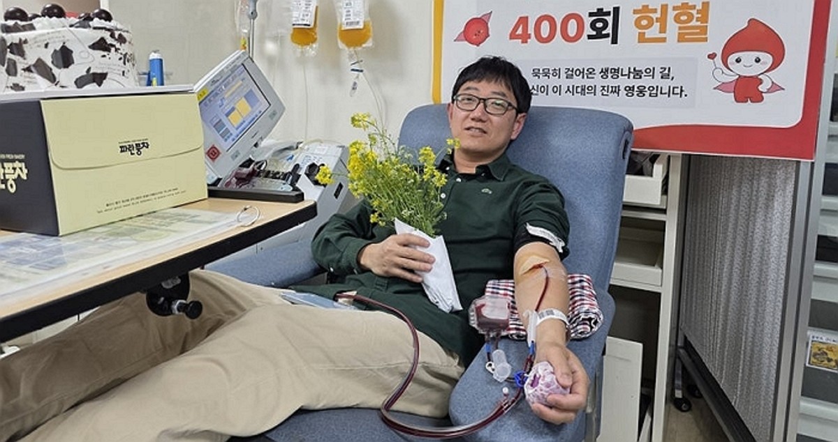 7일 대한적십자사 울산혈액원에 따르면 정진우(45) 교사는 지난 6일 헌혈의집 성남동센터에서 400번째 헌혈을 완료했다.