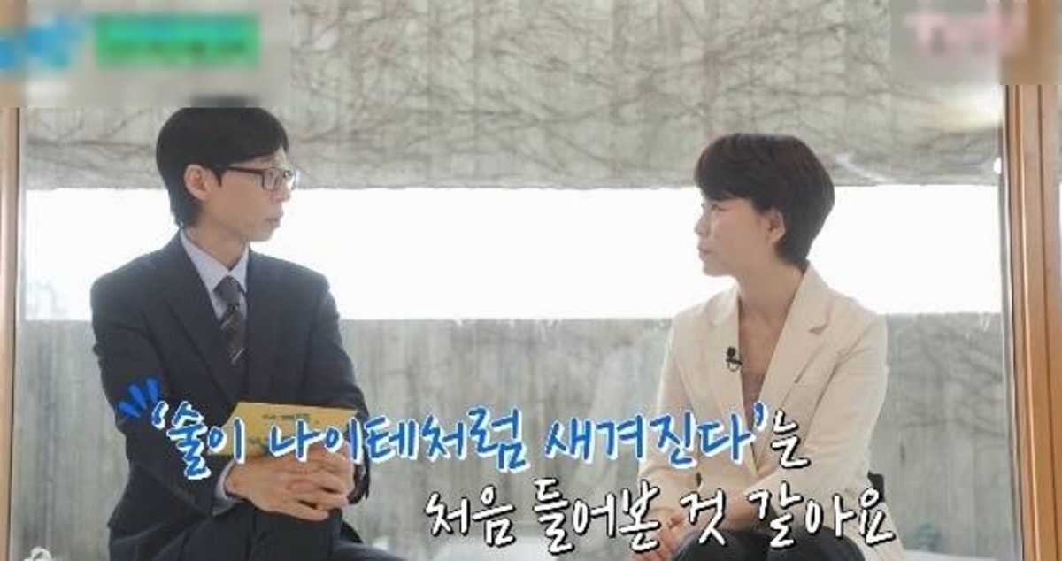 이에 주 교수는 "술을 안 먹어도 먹은 사람처럼 보이게 된다"고 공감했고, 유재석은 "술이 나이테처럼 새겨진다는 말은 처음 듣는다"며 놀라움을 감추지 못했다.