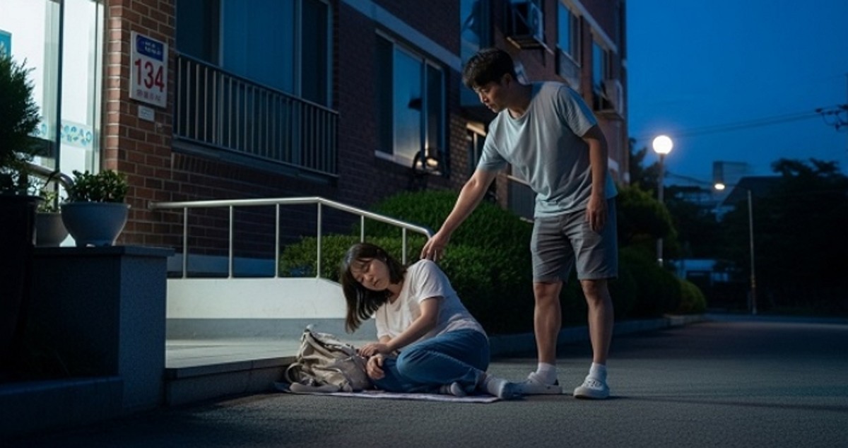 글 작성자 A씨는 며칠 전 새벽 2시가 넘어 담배를 피우러 나갔다가 현관 밖에서 쓰러져 자고 있던 여성을 발견했다고 밝혔다.