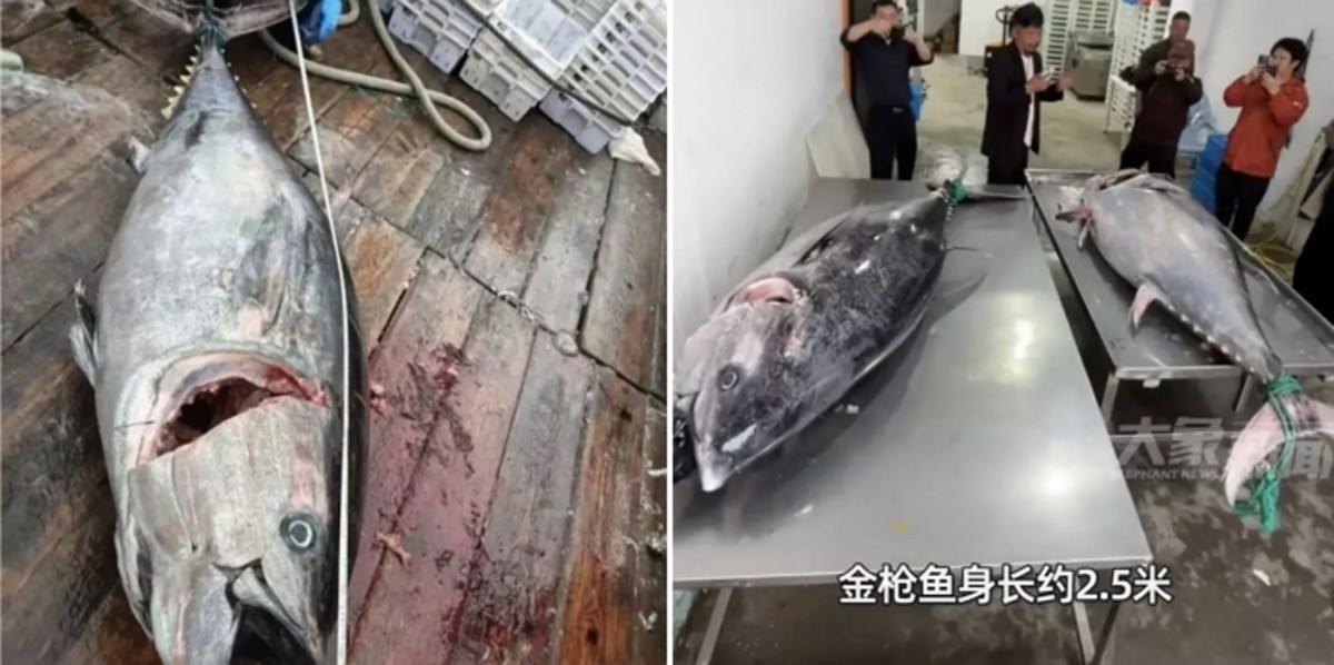 중국 저장성 앞바다에서 몸무게가 200kg이 넘는 거대 참다랑어 두 마리가 한꺼번에 잡혀 화제입니다. 두 마리 합산 시세가 최소 10만 위안(약 1,900만 원)을 상회할 것으로 보여 현지 어민들 사이에서 '바다의 로또'를 맞았다는 반응이 나옵니다.