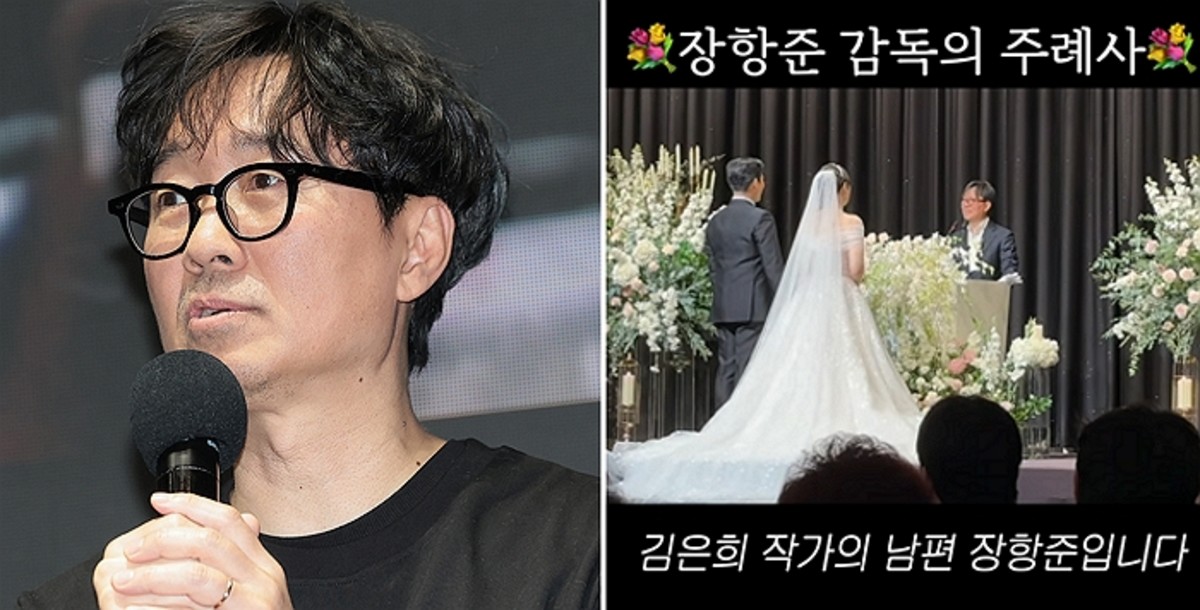 결혼식장에 들어선 장 감독은 "나는 한국이 낳은 세계적인 거장 김은희 작가의 남편 장항준"이라는 자기소개로 현장을 웃음바다로 만들었다.