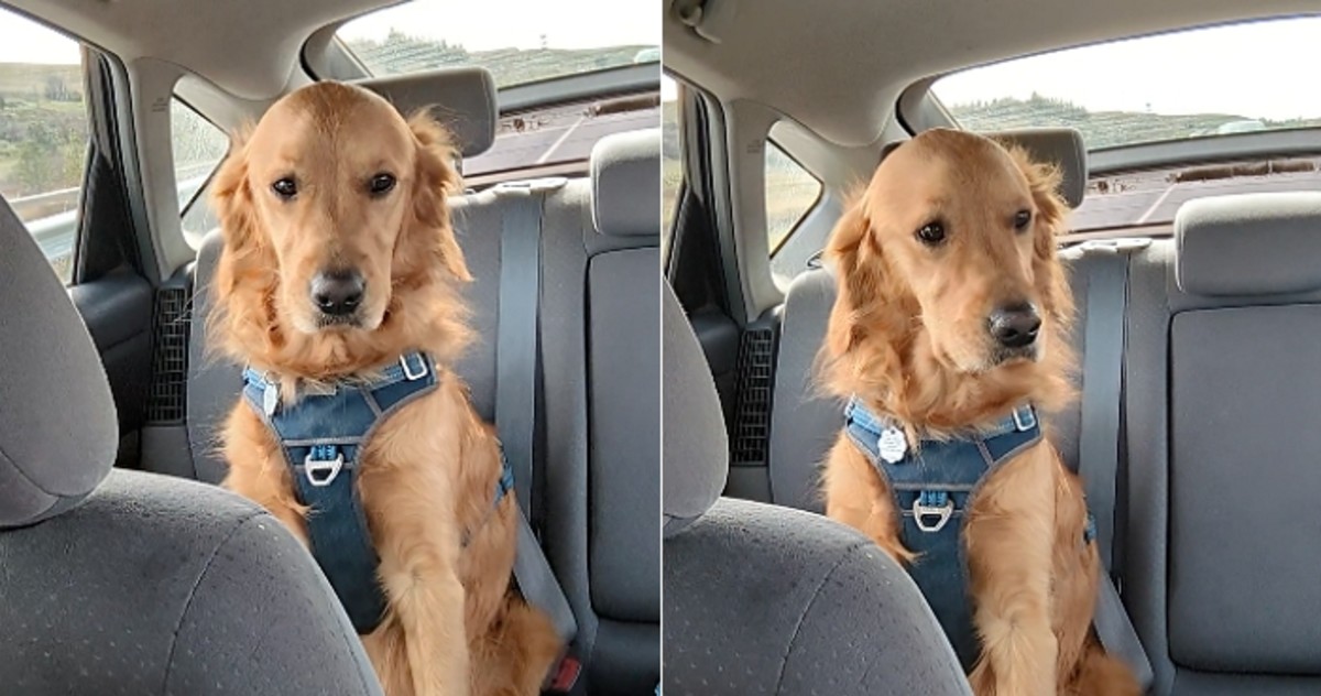 영상 속 주인공인 골든 리트리버 '올리'는 자동차 뒷좌석에 앉아 초점 없는 눈으로 멍하니 허공을 응시하고 있다.