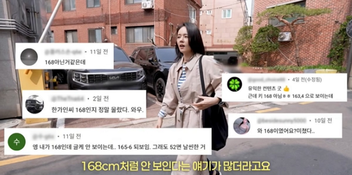 이때 제작진이 전날 공개된 다이어트 콘텐츠 이후 "168cm처럼 안 보인다"는 누리꾼들의 반응이 많았다는 소식을 전했다.