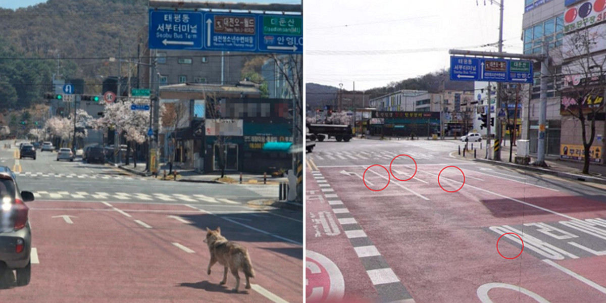 대전 중구 사정동 오월드네거리에서 늑대가 발견됐다는 사진, 출처가 불분명해 현재 확인 중이다