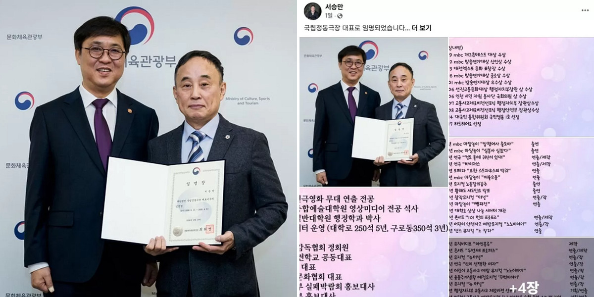 친이재명 성향으로 알려진 개그맨 서승만이 국립정동극장 대표이사로 임명되면서 전문성 논란에 휩싸인 가운데, 본인이 직접 SNS를 통해 경력과 성과를 공개하며 반박에 나섰다.