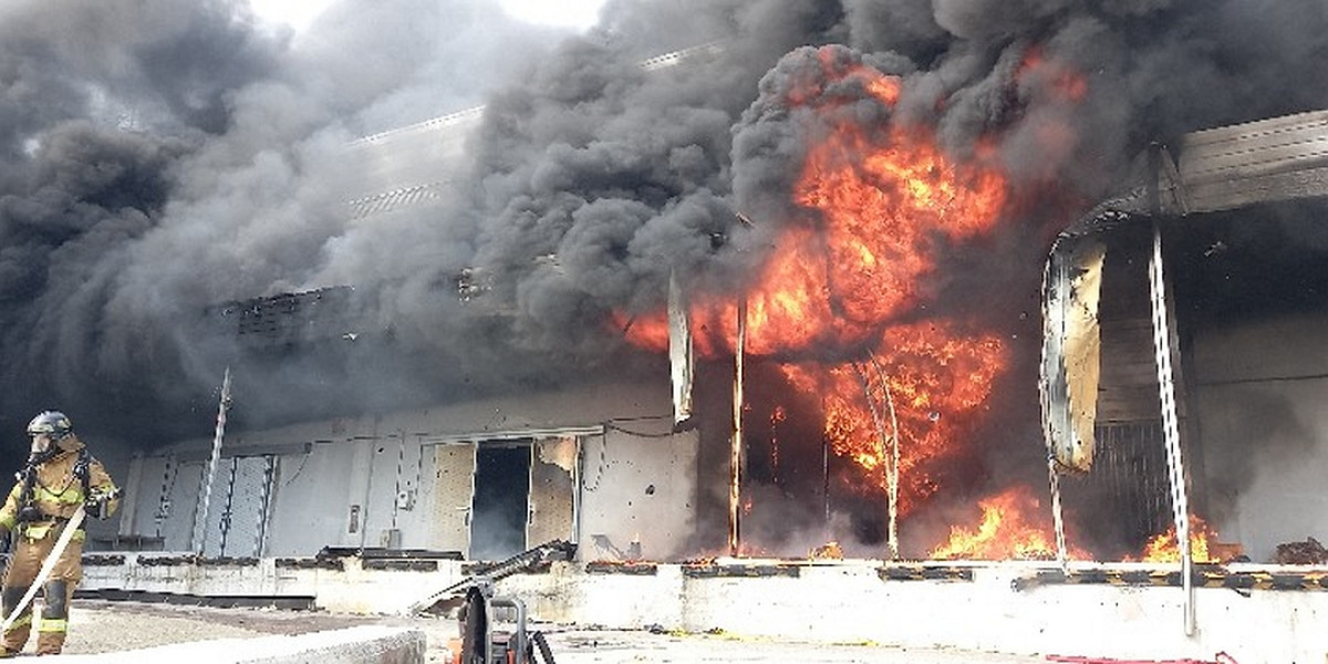 12일 오전 8시 25분쯤 전남 완도군 군외면 원동리의 한 냉동창고에서 불이 나 소방당국이 진화작업을 벌이고 있다 / 전남소방본부