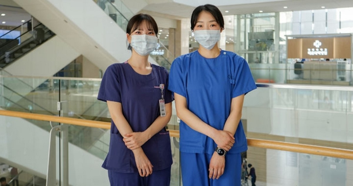 혈액종양내과 이나영(왼쪽) 간호사와 응급중환자실 김나현(오른쪽) 간호사 / 해운대백병원