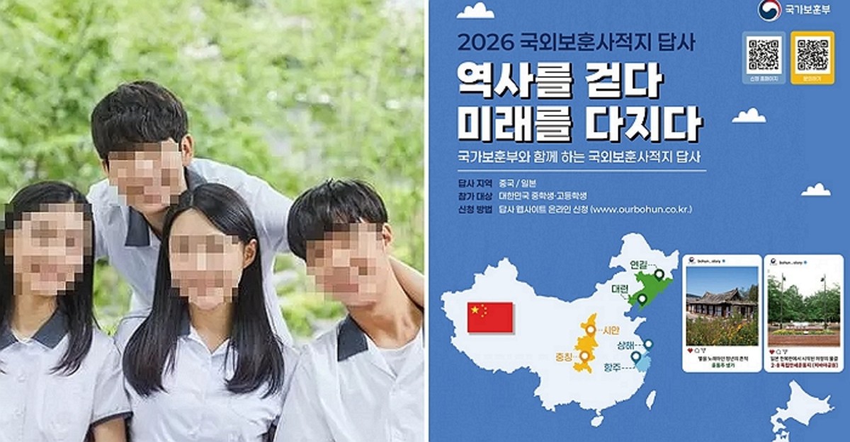 국가보훈부가 중·고생 830명을 대상으로 체재비 일체를 지원하는 중국·일본 지역 국외 보훈사적지 답사 프로그램 참가자를 모집한다.