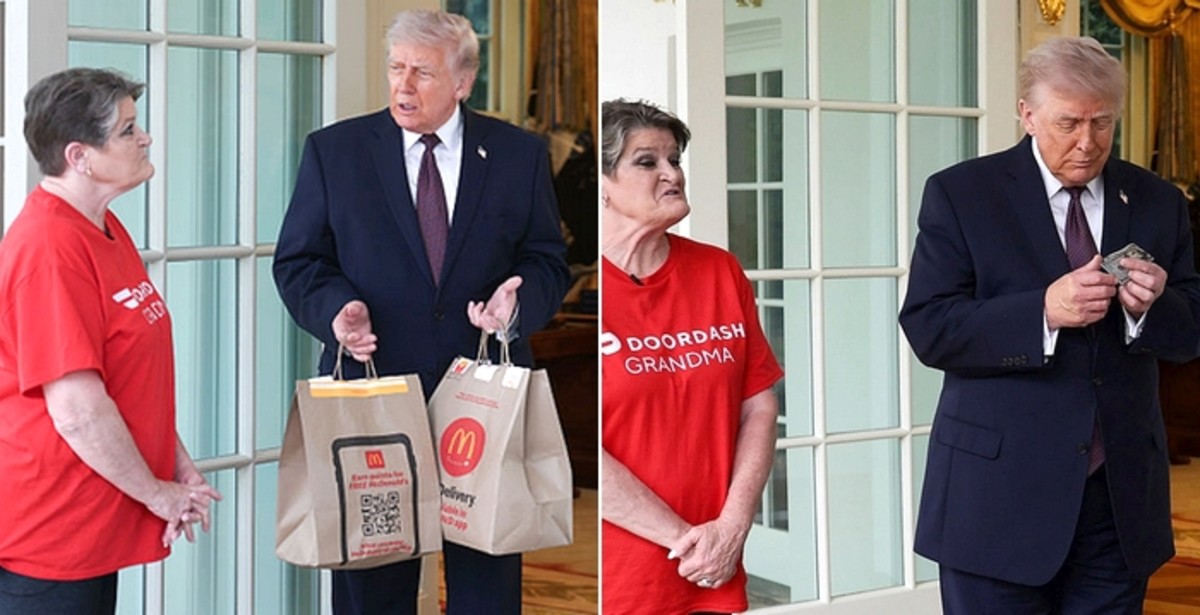 백악관 집무실에 맥도날드 햄버거 배달이 도착했다. 배달원은 일명 '도어대시 할머니'로 알려진 샤론 시몬스.