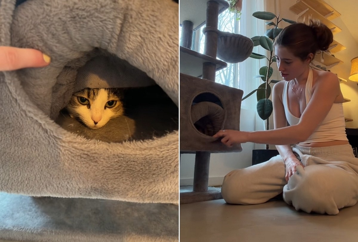 임시 보호 5일 차에 접어든 고양이 '튜나'는 여전히 캣타워 구석에 몸을 웅크린 채였다. 먹는 것도, 노는 것도 거부하며 좀처럼 마음의 문을 열지 않는 튜나를 위해 데이비슨은 최후의 수단을 꺼내 들었다. 바로 평소 다른 고양이들의 적응을 돕는 데 탁월한 능력을 보였던 반려묘 '시기'를 투입한 것이다.