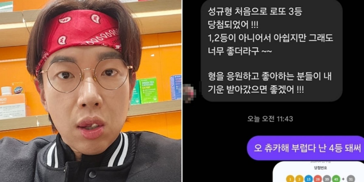 그는 "신기한 건 큐알 코드로 당첨 확인하고 있는데 3등한 동생이 디엠을 보낸 것이다"며 지인과의 메시지 내용을 함께 공유했다. 이어 "모쪼록 우리 둘의 좋은 기운이 널리 퍼지기를"이라는 바람을 덧붙였다.