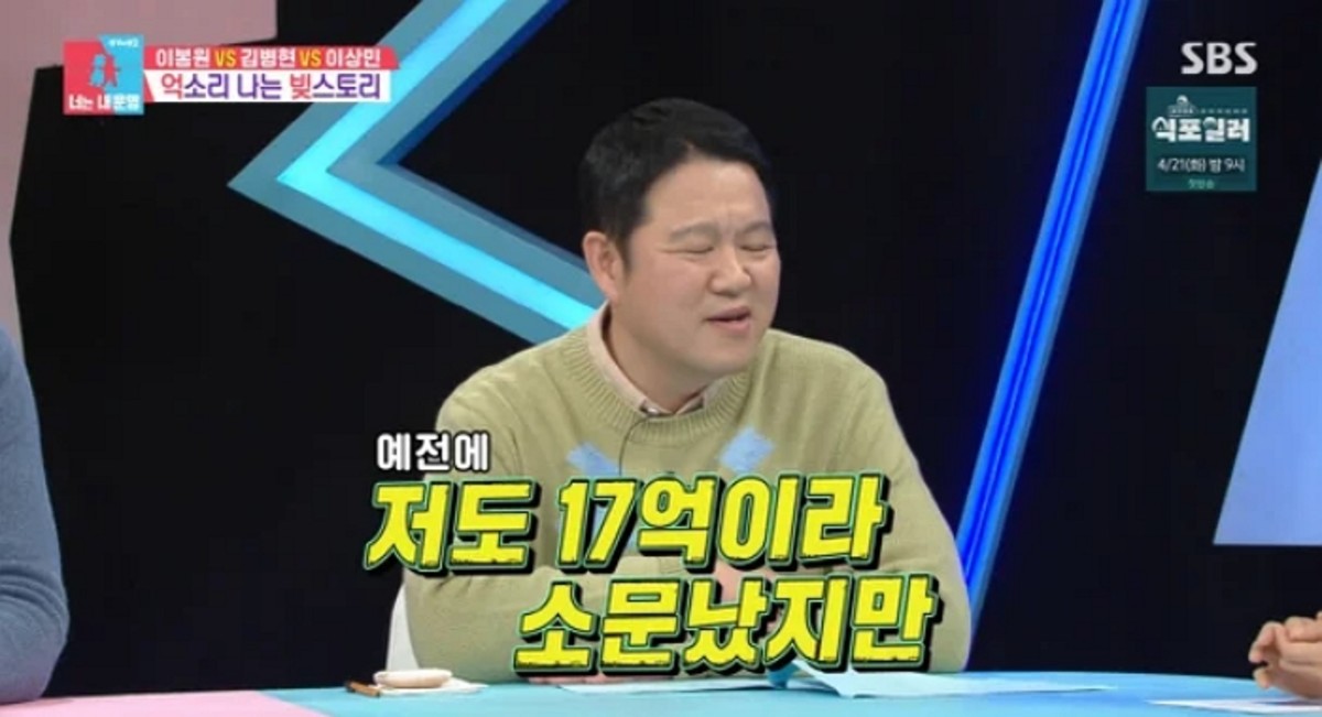 지난 14일 방송된 SBS '동상이몽 시즌2-너는 내 운명'에서는 이상민, 이봉원, 김병현 등 '채무의 아이콘'들이 출연한 가운데 김구라가 자신의 경제적 위기 상황을 회상했다. 이날 이상민이 "밝혀진 금액만 69억 원이었다"고 고백하자 김구라는 "나도 알려진 건 17억일 뿐"이라며 실제 체감했던 무게가 더 컸음을 시사했다.