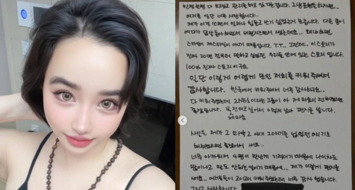 2NE1 출신 박봄이 한 달 전 멤버 산다라박을 향해 제기했던 마약 관련 폭로를 철회하며 화해를 요청하는 손편지를 공개했다.