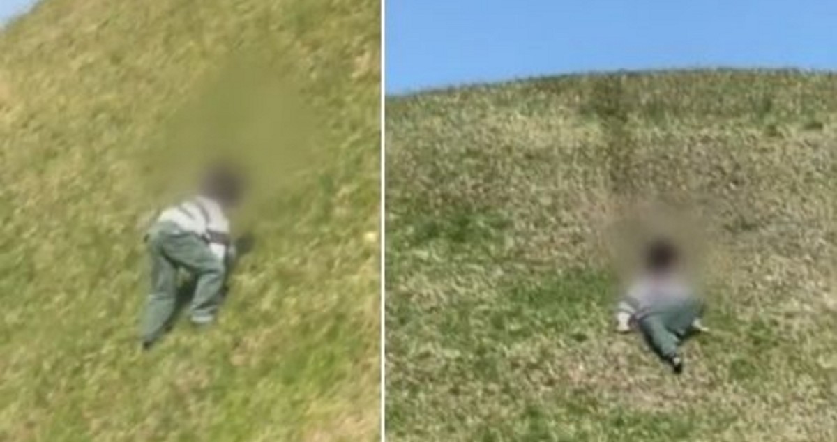 공개된 영상 속 아이는 가파른 고분 꼭대기까지 손발을 다 써서 기어 올라간 뒤, 엉덩이를 대고 아래로 미끄러져 내려왔다. 이러한 행동은 한 번에 그치지 않고 여러 차례 반복됐다.