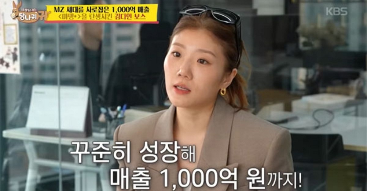 1992년생 김다인 대표는 '2023년 지금 가장 빛나는 여성 리더 7인'에 선정된 인물로, 1000억 매출 패션 브랜드 마뗑킴을 창립한 것으로 유명하다. 현재는 새로운 브랜드를 론칭해 2년 만에 연 매출 100억을 달성하며 여러 기업과의 컬래버레이션으로 화제를 모으고 있다.