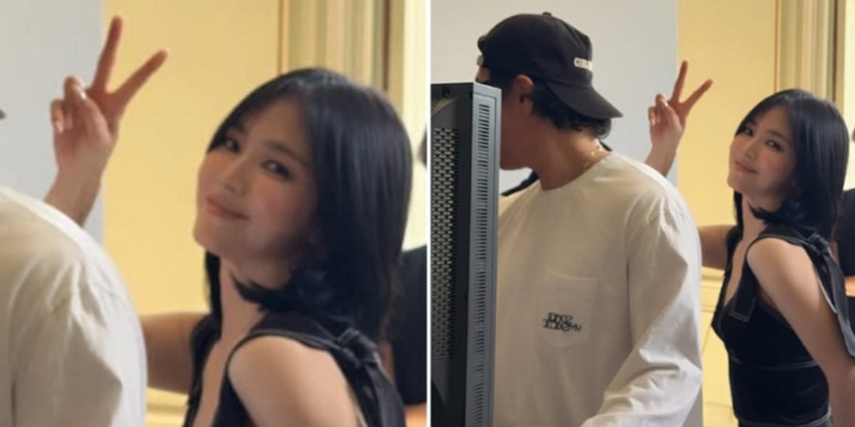 공개된 사진 속 송혜교는 렌즈를 향해 장난기 가득한 '브이' 포즈를 취하며 특유의 사랑스러운 매력을 발산했다.