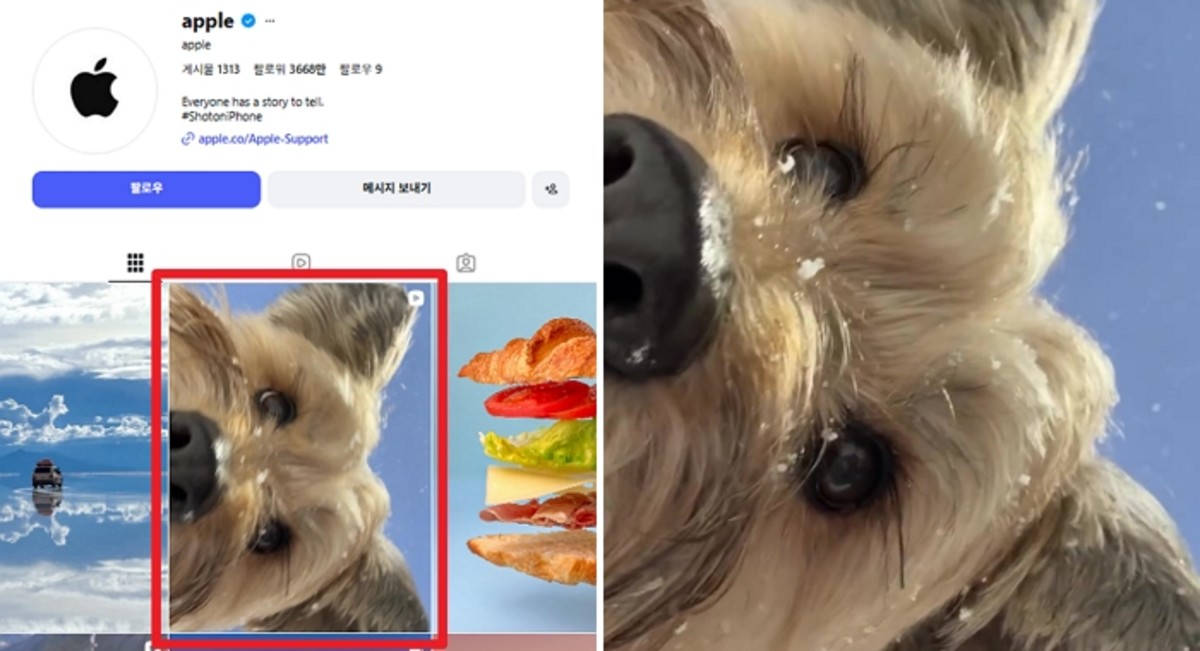 애플 공식 인스타그램에 한국의 특별한 강아지가 등장해 전 세계 네티즌들의 시선을 사로잡고 있다.