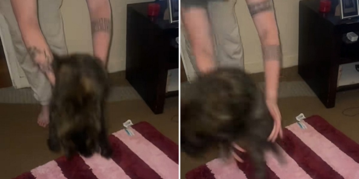 지난 16일 한 틱톡 계정에 올라온 영상에는 거북등무늬 고양이가 새로운 욕실 매트와 마주한 뒤 공포에 질려 뛰어오르는 모습이 담겼다.