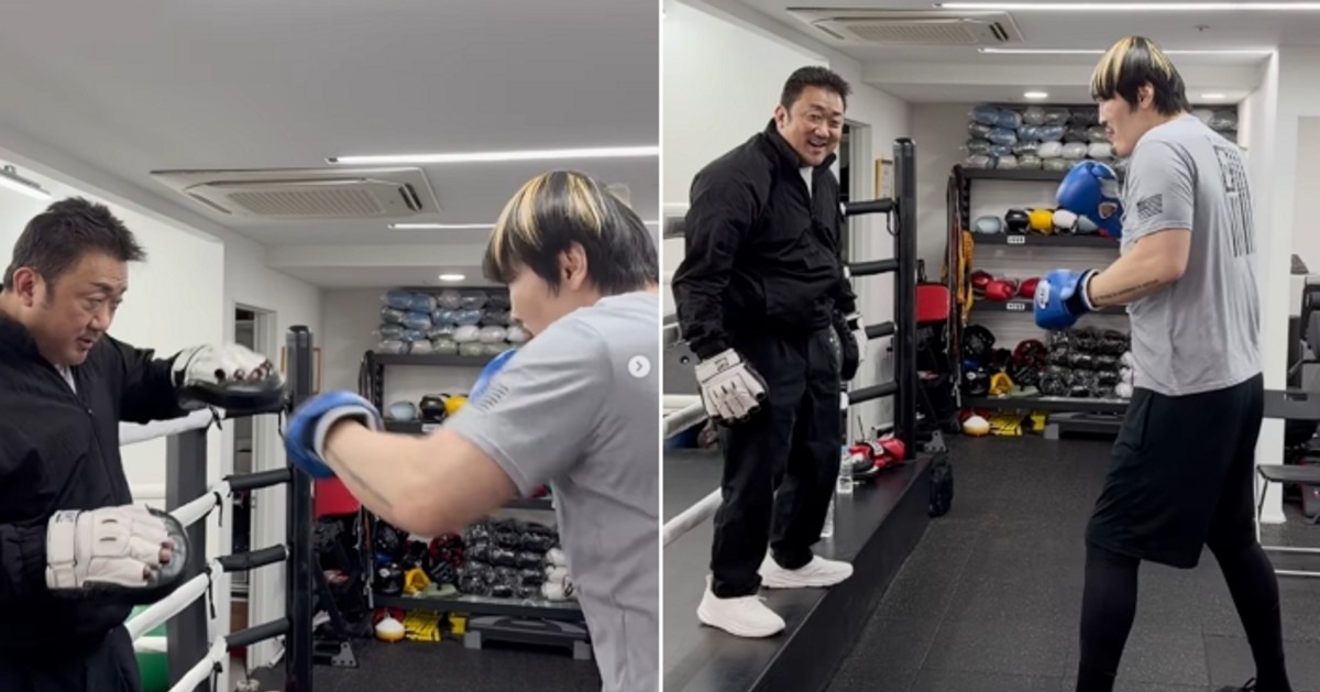 공개된 사진 속에서 마동석은 자신이 운영하는 복싱장에서 최홍만과 나란히 서서 주먹을 불끈 쥔 채 포즈를 취하고 있다. 평소 강인한 이미지로 유명한 마동석이지만, 218cm의 거구 최홍만 옆에서는 작아 보이는 모습이 시선을 끈다.