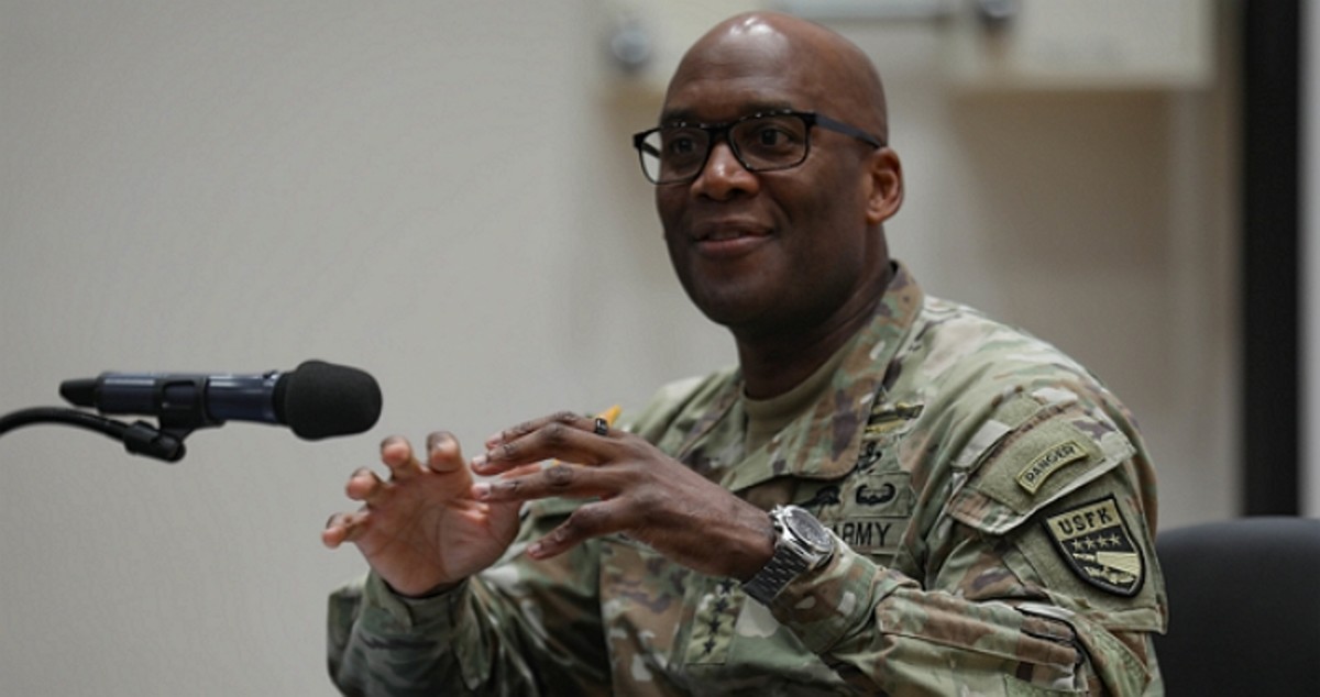 제이비어 브런슨 주한미군사령관이 지난 8일 경기 평택 험프리스 미군기지에서 기자간담회를 하고 있다. / 주한미군 사령부
