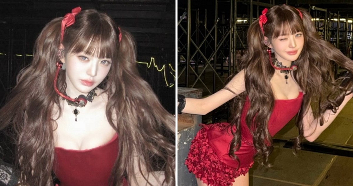 공개된 사진 속 장원영은 강렬한 레드 컬러의 오프숄더 미니 드레스를 완벽하게 소화하며 비현실적인 인형 미모를 뽐냈다.