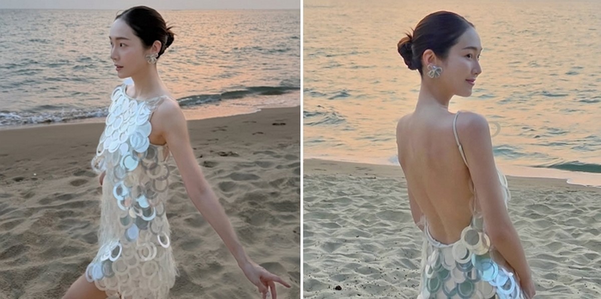 사진 속 제시카는 바다를 배경으로 화려한 원형 디테일이 촘촘하게 박힌 미니 드레스를 입고 독보적인 분위기를 연출했다. 특히 빛을 반사하는 소재의 특성상 마치 비키니를 입은 듯한 착시 효과를 불러일으키며 시선을 사로잡았다.