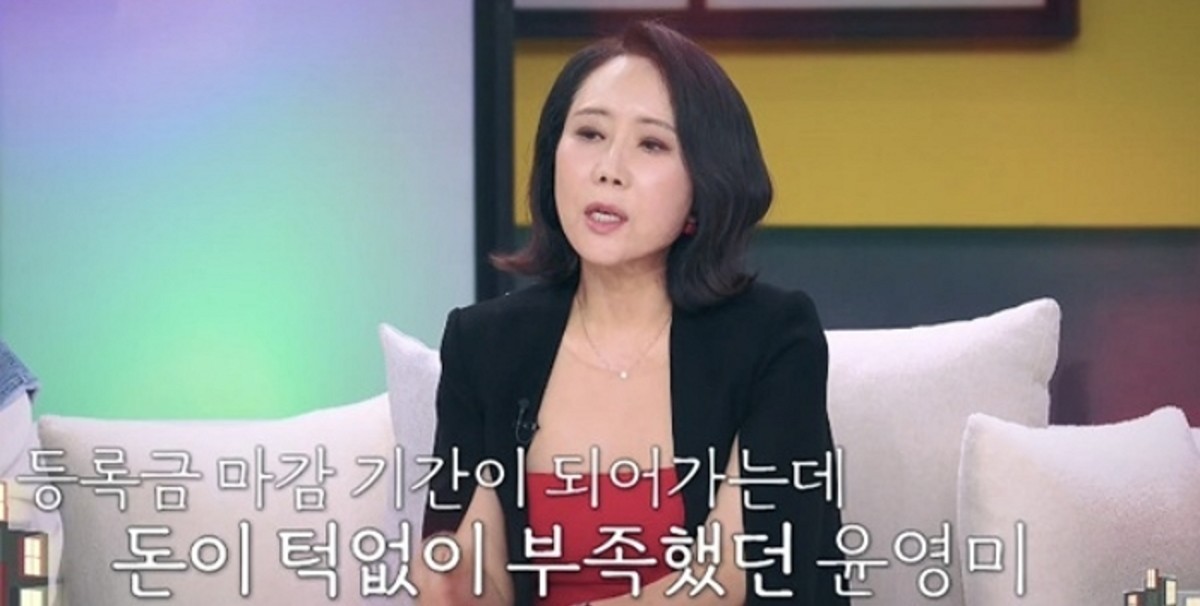 윤영미가 겪은 경제적 압박은 극단적인 생각을 할 정도로 가혹했다. 그는 "며칠 뒤에 등록금 몇천만 원을 보내야 하는데 통장에 잔고가 하나도 없었던 적이 있다"며 긴박했던 당시 상황을 회상했다.